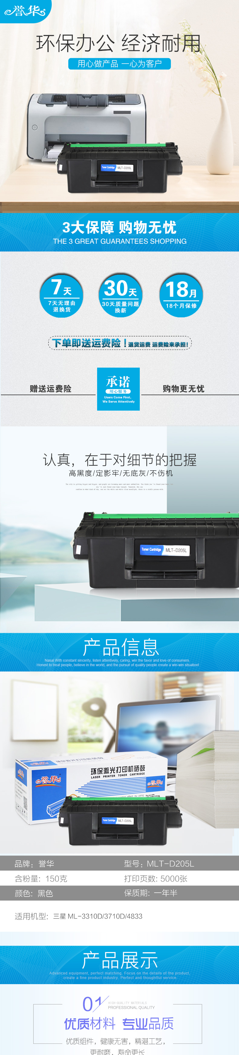 誉华MLT-D205L打印机硒鼓适用三星ML-3310D/3710D/4833等 黑色 黑色 自营