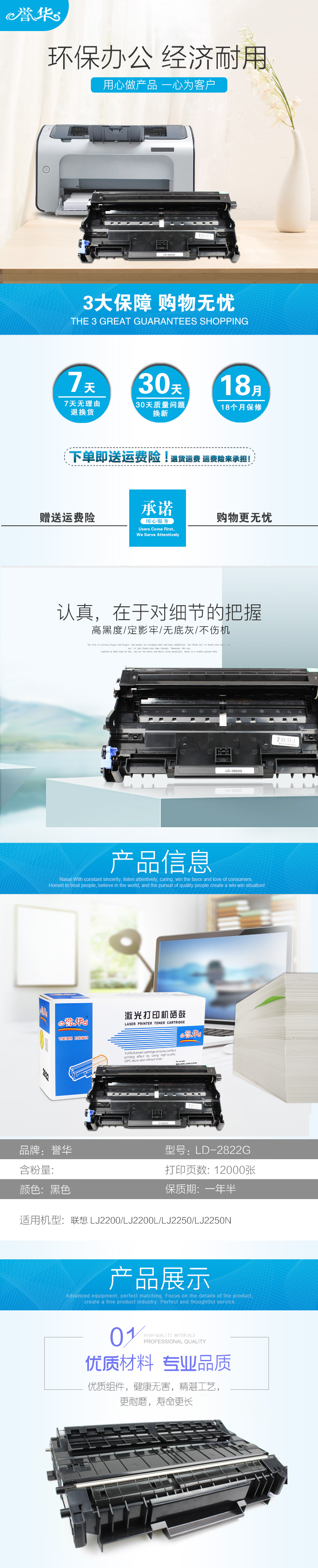 誉华LD2822打印机硒鼓单只装适用联想 LJ2200/LJ2200L/LJ2250等 黑色 自营