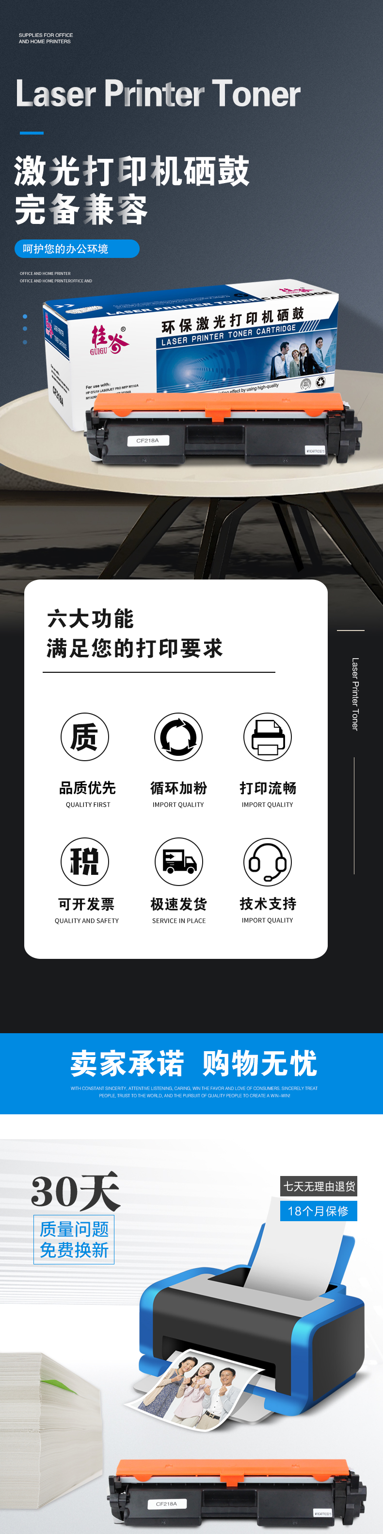 桂谷(GUIGU)CF218A打印机硒鼓适用HP LaserJet pro MFP M132等 黑色 黑色 自营