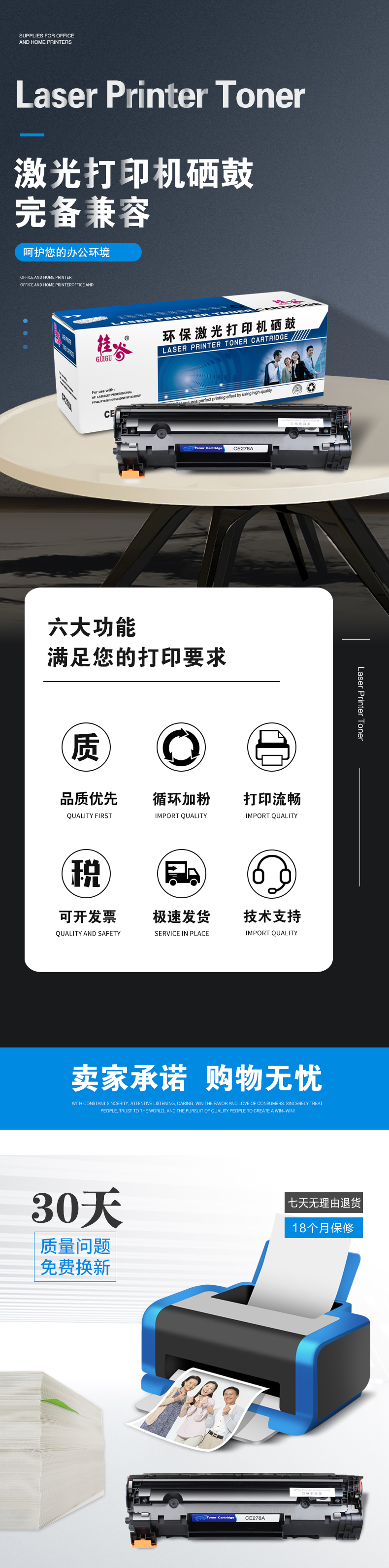 桂谷(GUIGU)CE278A易加粉硒鼓适用CRG328适用于1536DNF/Canon4410等 黑色 自营