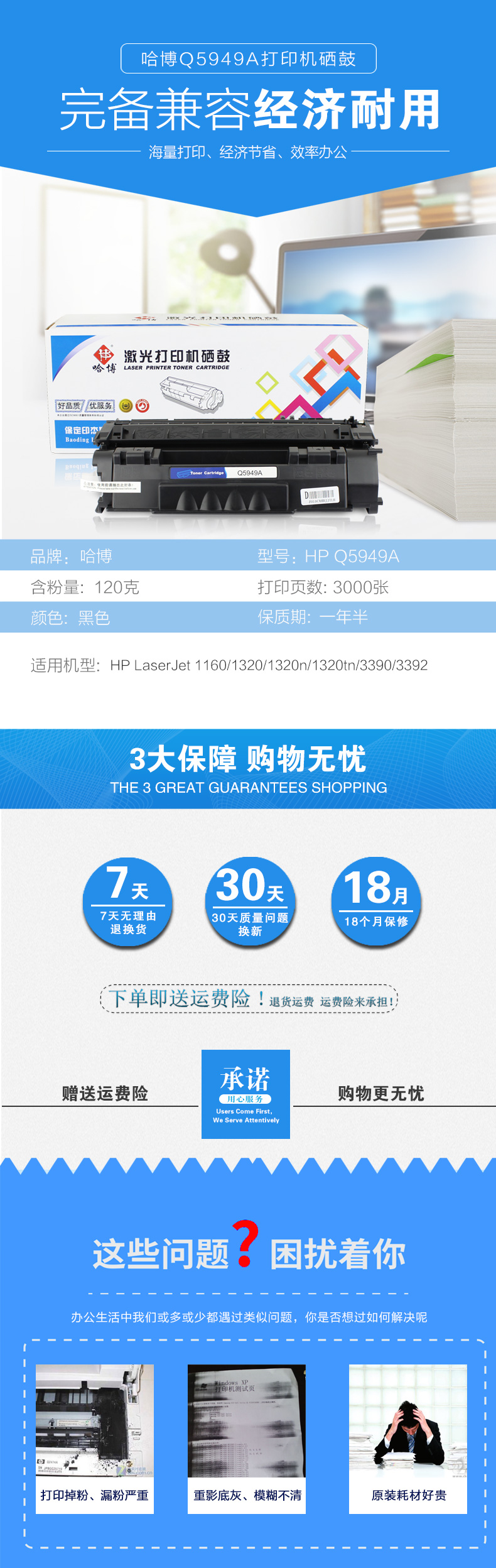 哈博打印机硒鼓HP5949A适用HP1160/1320/3390/3392等 黑色 自营