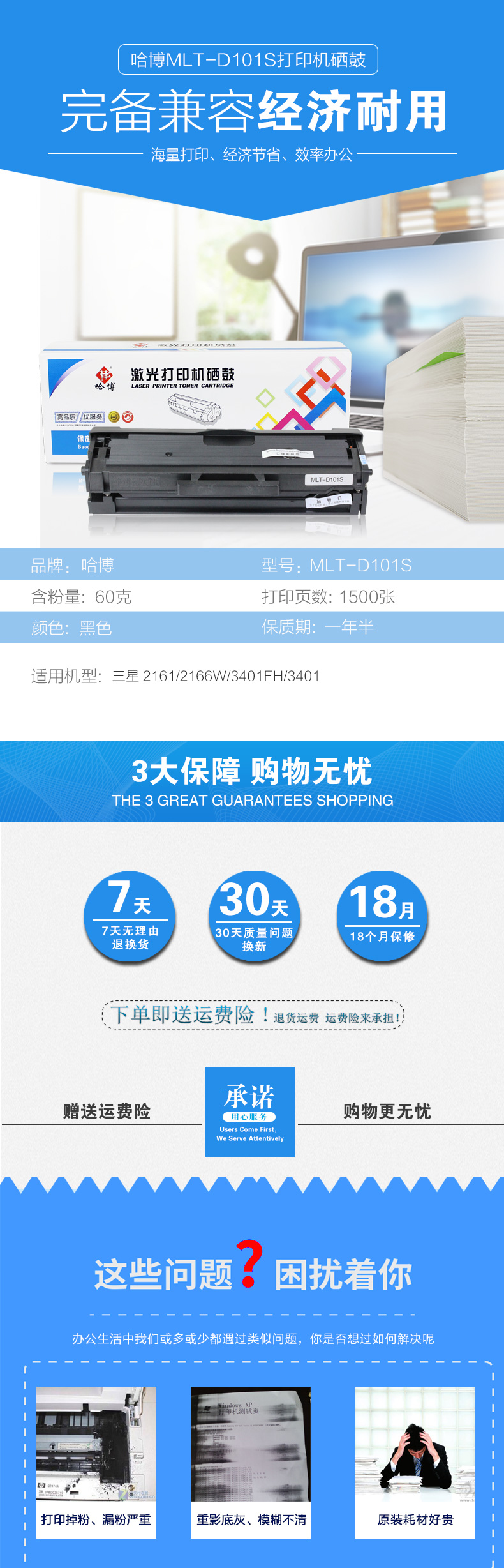 哈博MLT-D101S易加粉打印机硒鼓适用三星 2161/2166W/3401等 黑色 黑色 自营