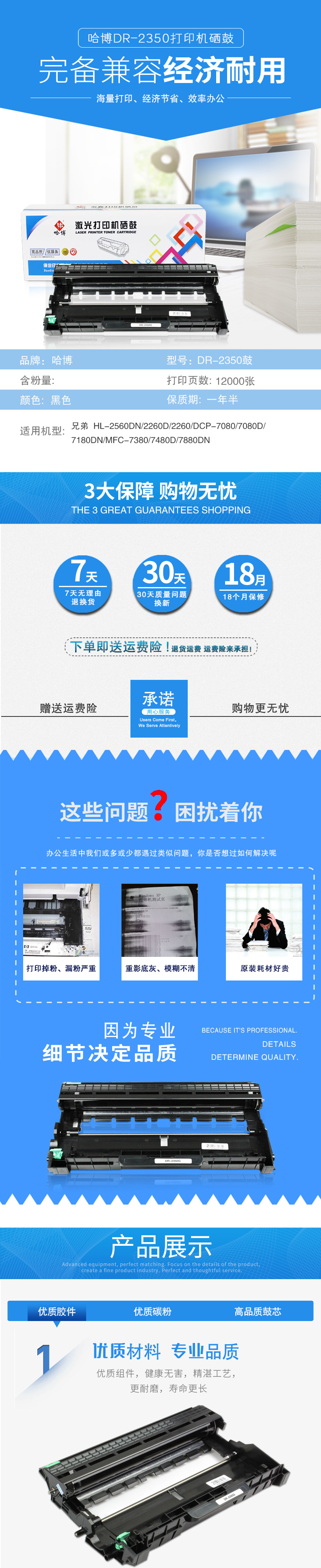 哈博DR-2350打印机硒鼓适用兄弟 HL-2560DN/2260D/2260等 黑色 自营
