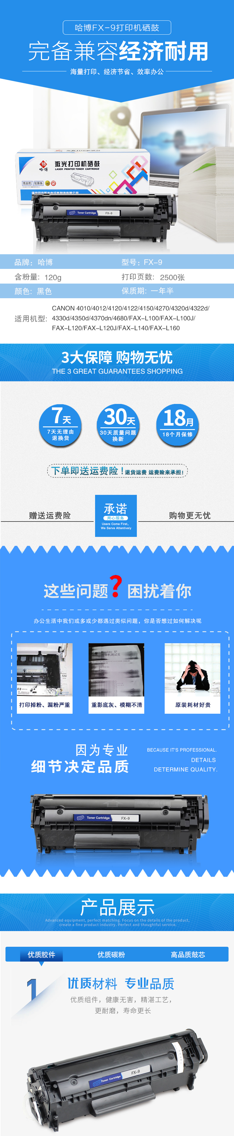哈博打印机黑色硒鼓FX-9适用佳能 4010/4012/4120/4122/4150等 黑色 自营
