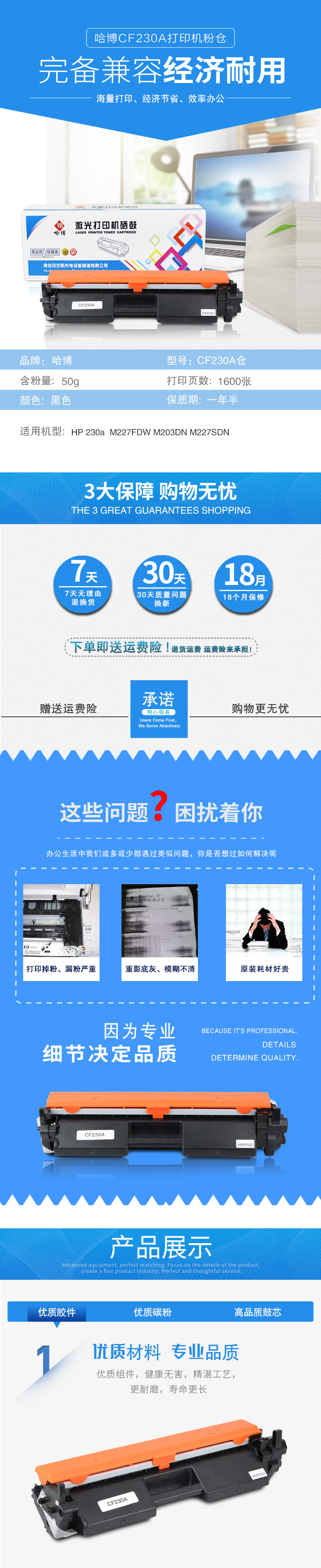 哈博CF230A打印机硒鼓适用HP M227FDW/M203DN/M227SDN等 黑色 自营