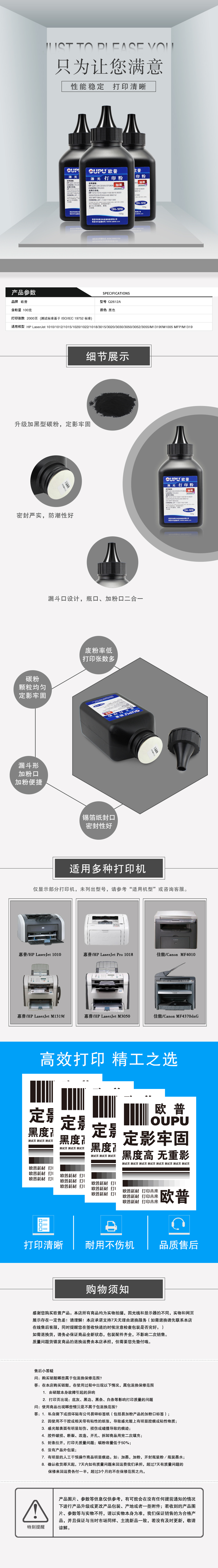 欧普(OUPU)Q2612A碳粉墨粉单支装适用惠普HP1015/1018/1020plus等 自营