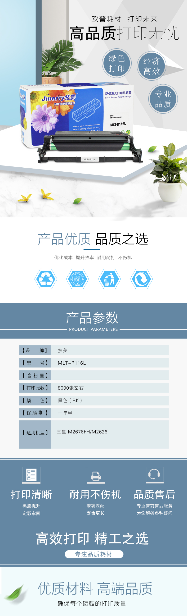 技美(Jmerry)打印机耗材MLT-R116L硒鼓适用三星 M2676FH/M2626 黑色 自营