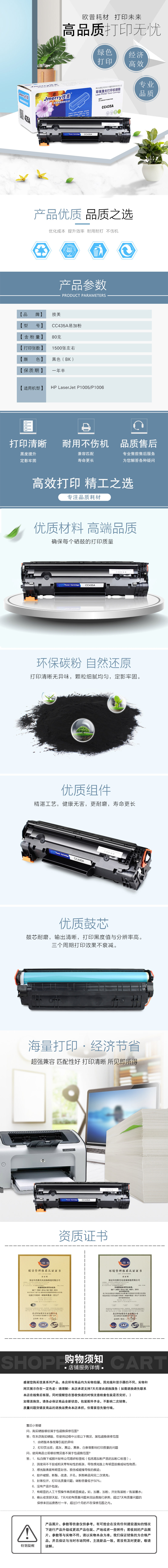 技美(Jmerry)HP LaserJet P1005/P1006打印机硒鼓黑色HP CC435A 黑色 自营