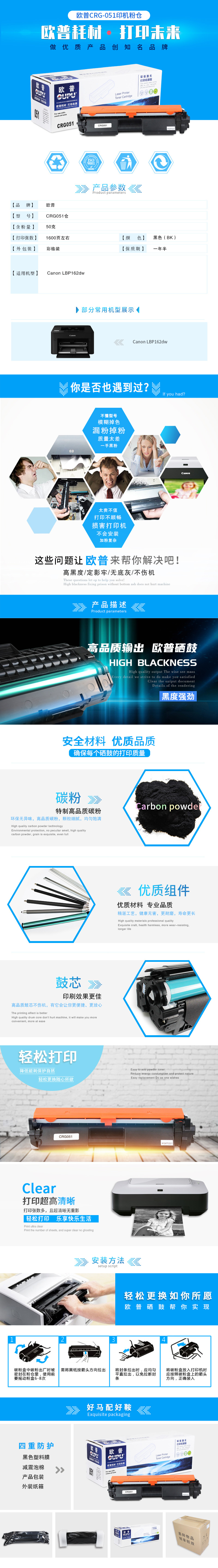 欧普(OUPU)CRG051硒鼓打印机耗材适用Canon LBP162dw等 黑色 自营