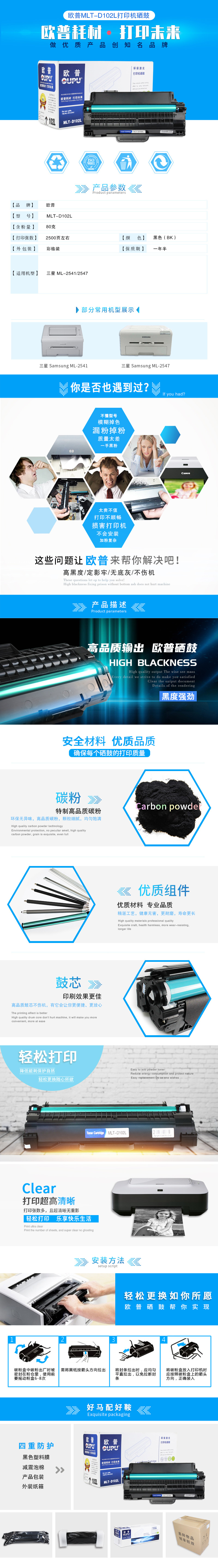 欧普(oupu)MLT-D102L打印机硒鼓适用三星 ML-2541/2547 等 黑色 自营