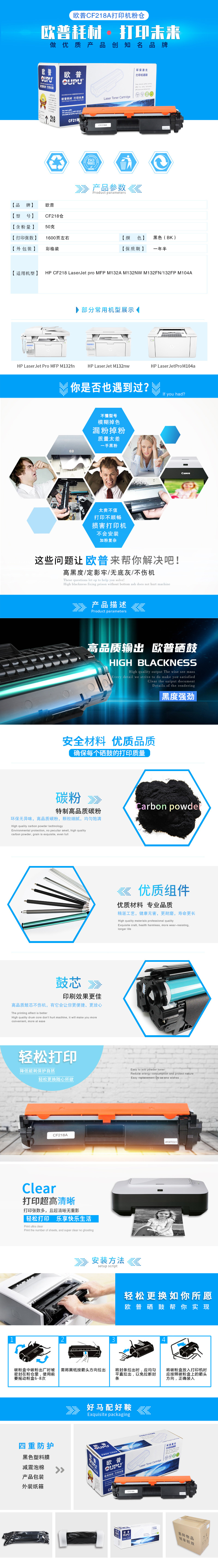 欧普(OUPU)CF218A打印机硒鼓适用HP LaserJet pro MFP M132等 黑色 自营