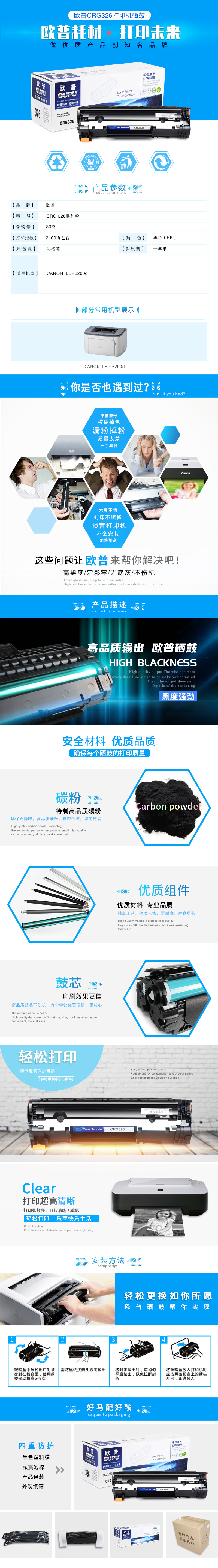 欧普(oupu)CRG326易加粉硒鼓 适用CANON LBP6200d等 黑色 自营