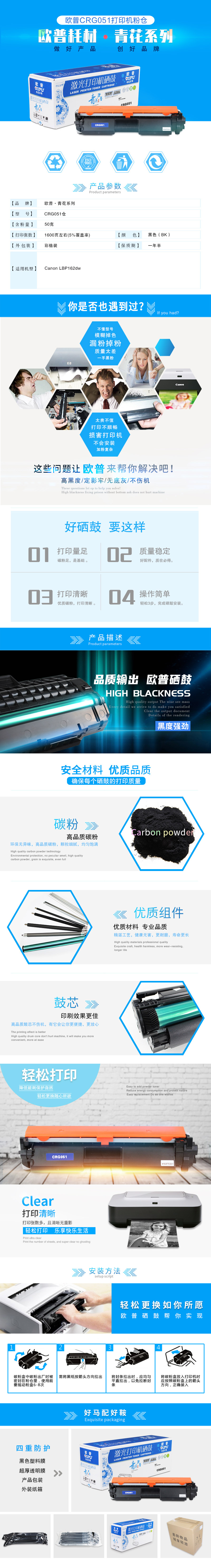 欧普(oupu)青花系列CRG051硒鼓打印机耗材适用Canon LBP162dw等 自营