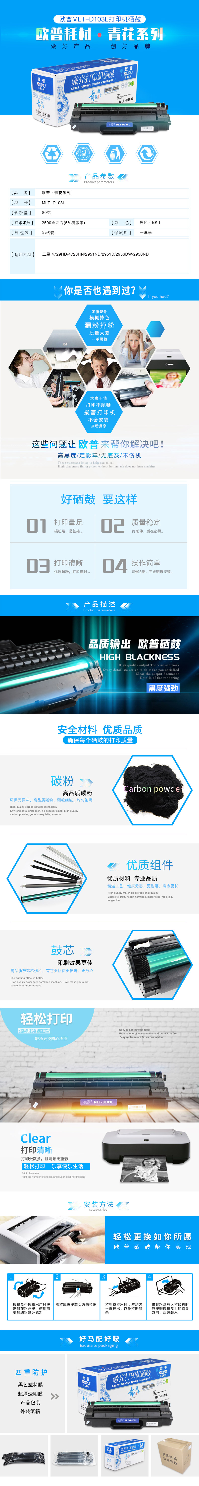 欧普(oupu)青花系列MLT-D103L硒鼓适用三星 4729HD/4728HN/2951ND/2951D/2956DW/2956ND 自营