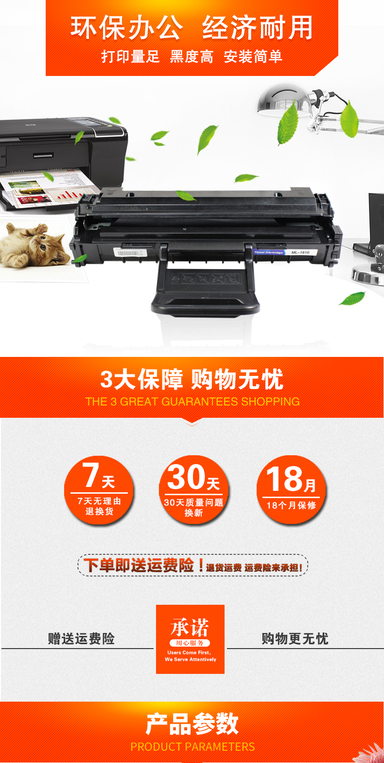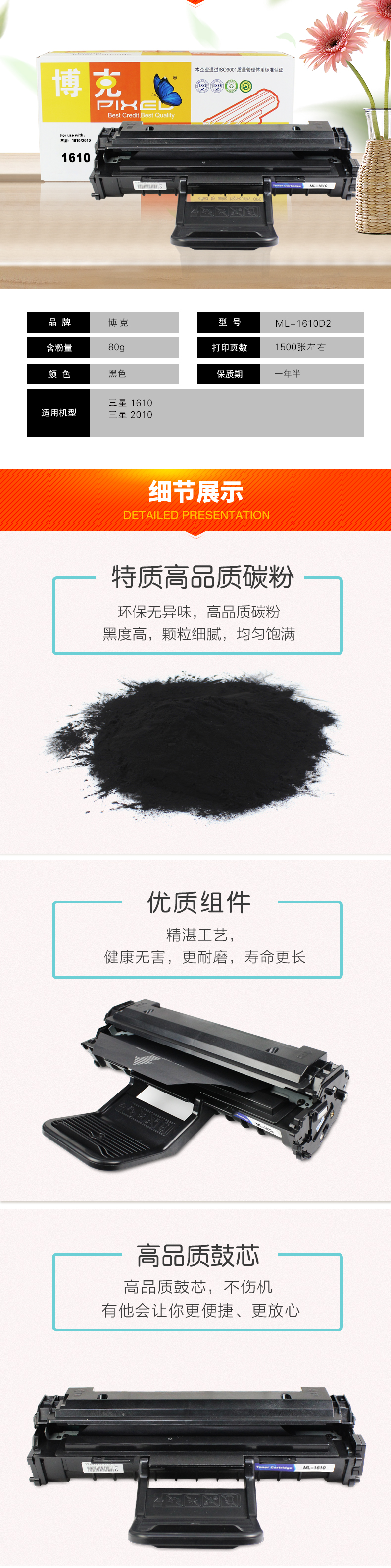 博克(PIXED)打印机硒鼓ML-1610D2 黑色适用三星 1610/2010等 黑色 自营