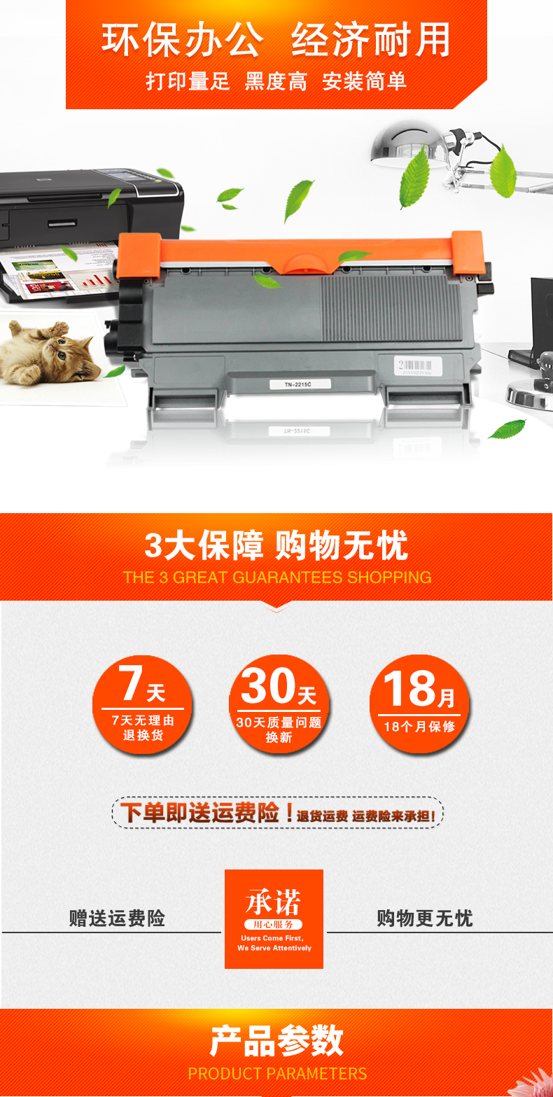 博克(PIXEL)打印机粉仓TN-2215适用兄弟2240D/2250DN等 黑色 自营