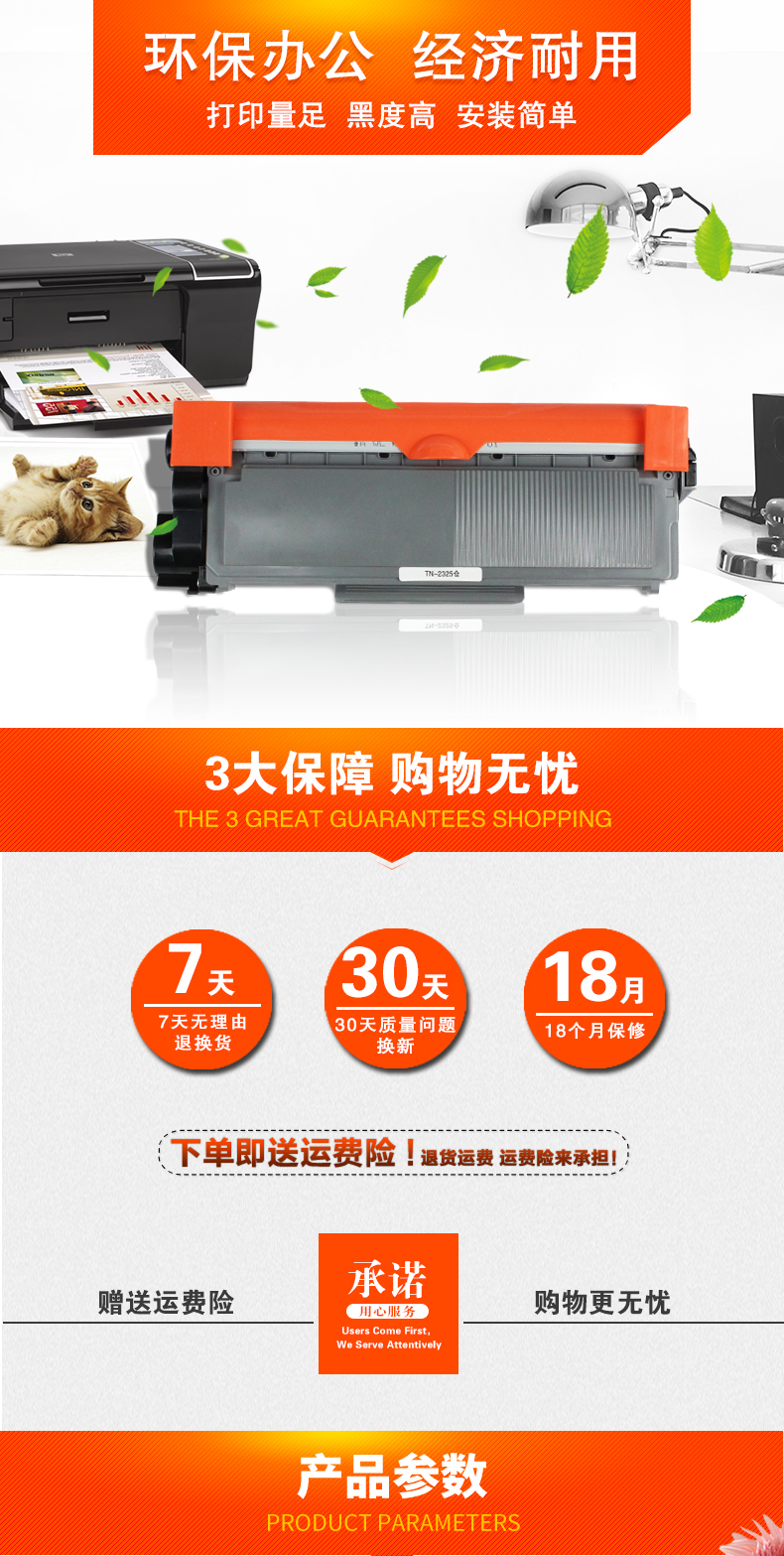 博克(PIXEL)打印机粉仓TN-2325适用兄弟HL-2560DN/2260/DCP-7080等 黑色 自营