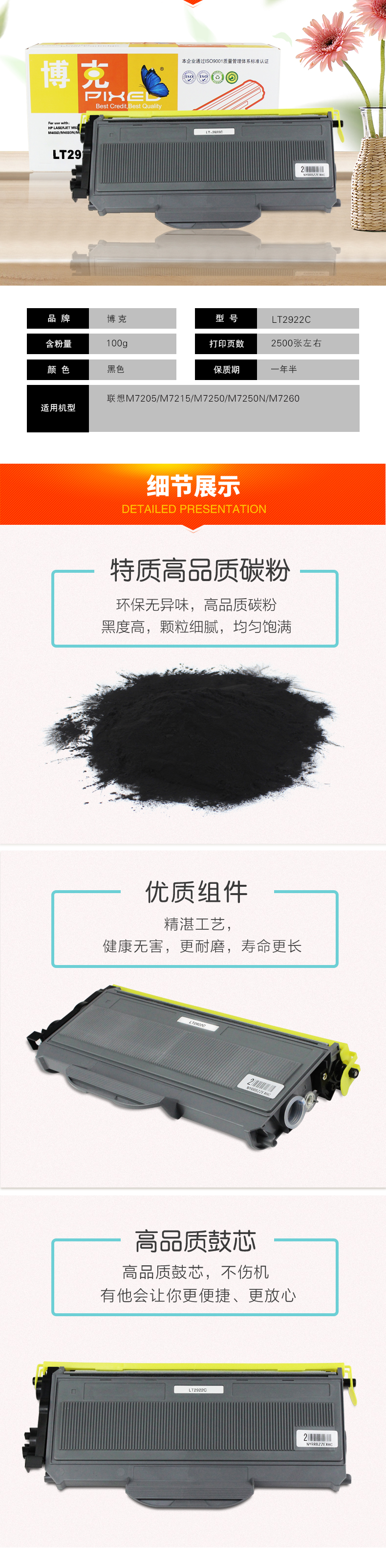 ¥200.00博克(PIXEL)LT-201粉仓适用联想 S2001/S1801/M1840/M2040等 黑色