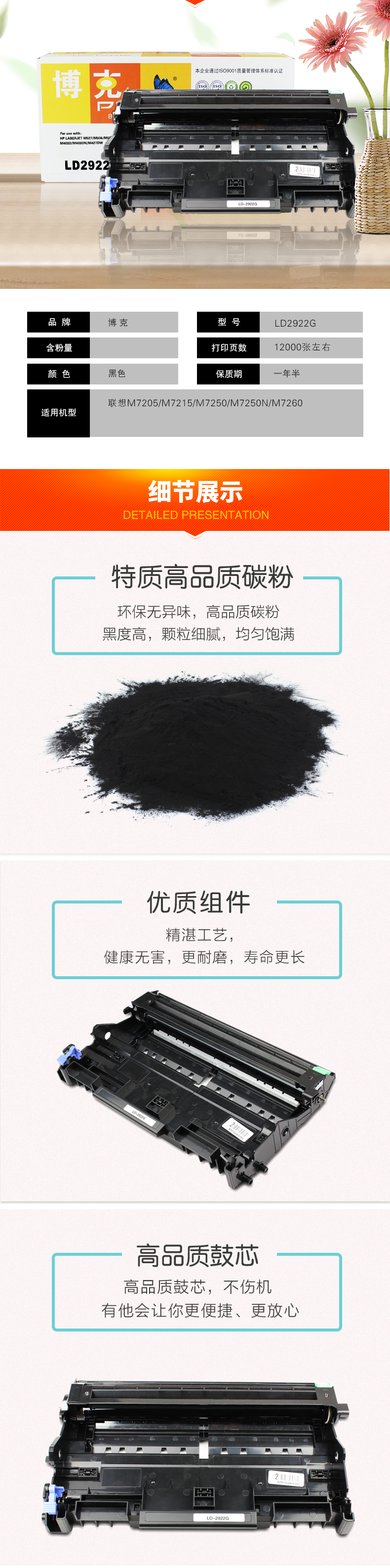 博克(PIXEL)LD2922硒鼓打印耗材适用联想M7205/M7215/M7250/M7250N等 黑色 自营