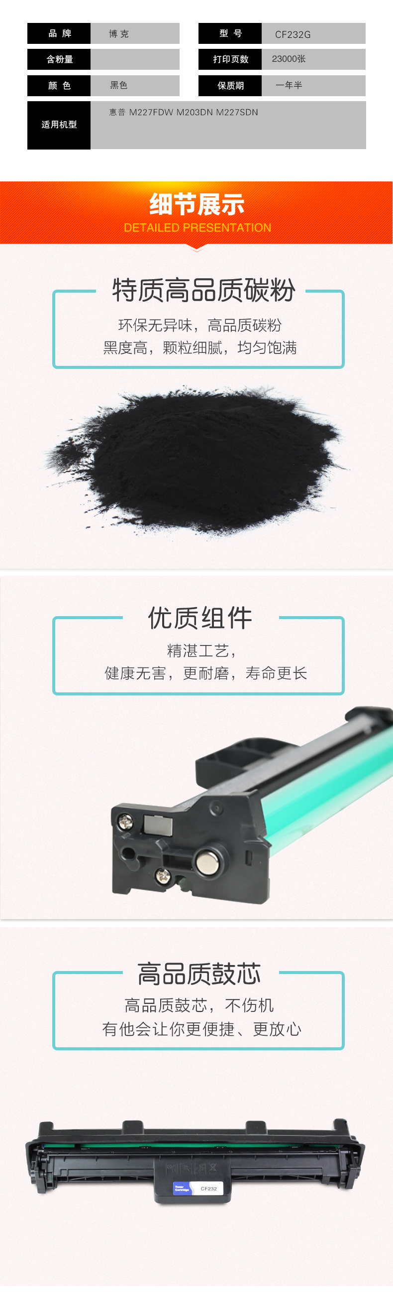 博克(PIXEL)CF233A打印机硒鼓适用HP 33A/M106/M134等 黑色 黑色 自营