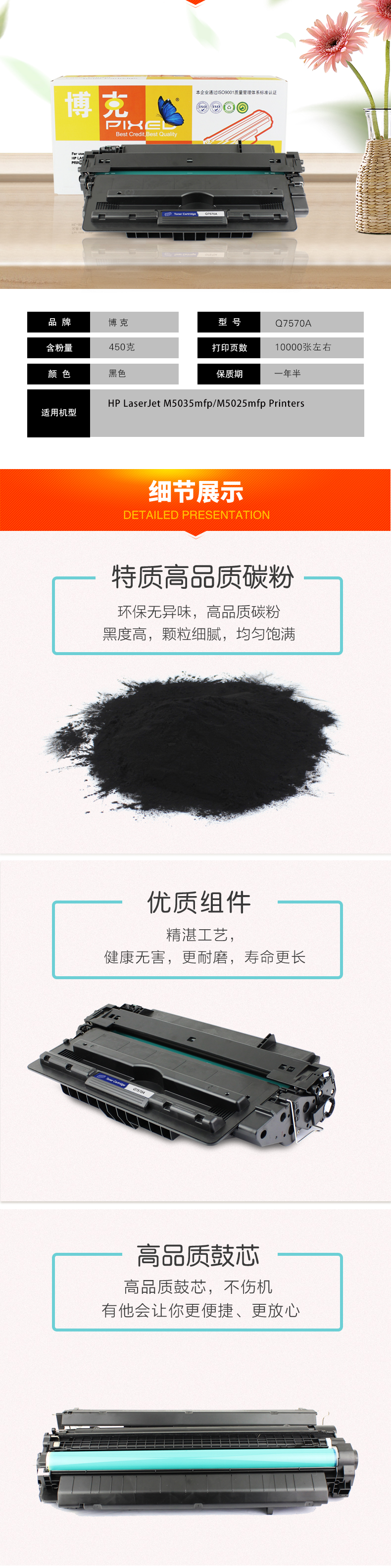 博克(PIXED)HP7570A打印机硒鼓适用HPLaserJet M5025mfp 黑色 自营