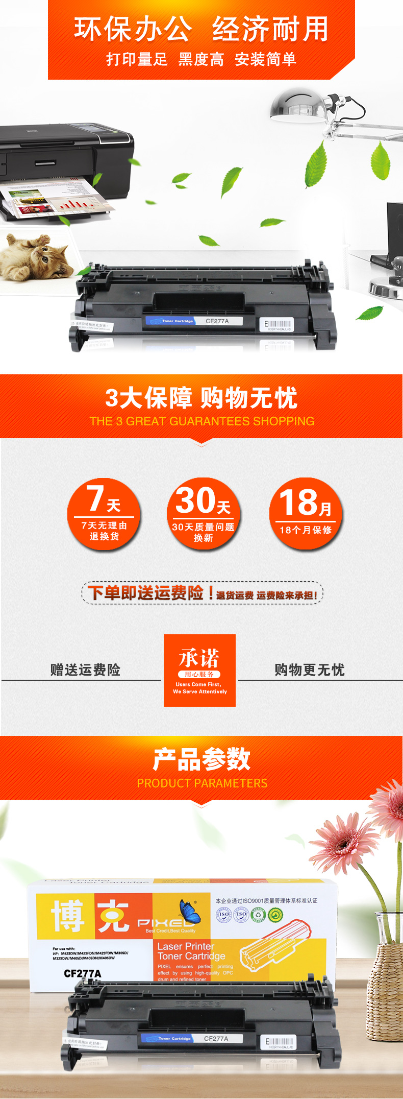 博克(PIXEL)打印机硒鼓 HP CF277A 适用HP M429/305d/329Dw/405等 黑色 自营