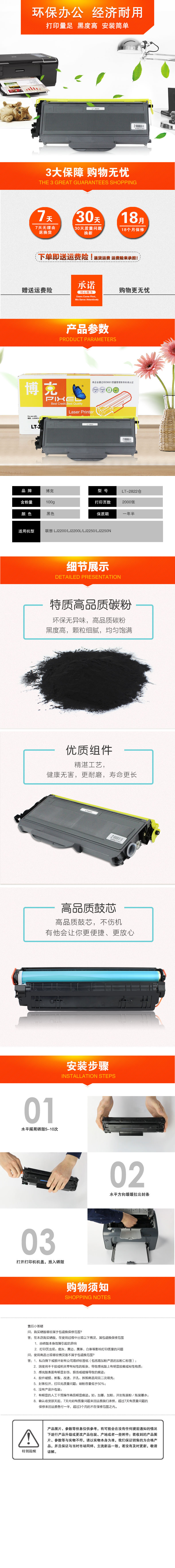 博克(PIXEL)LT2822打印机粉仓黑色适用联想 LJ2200/LJ2200L/LJ2250等 黑色 自营
