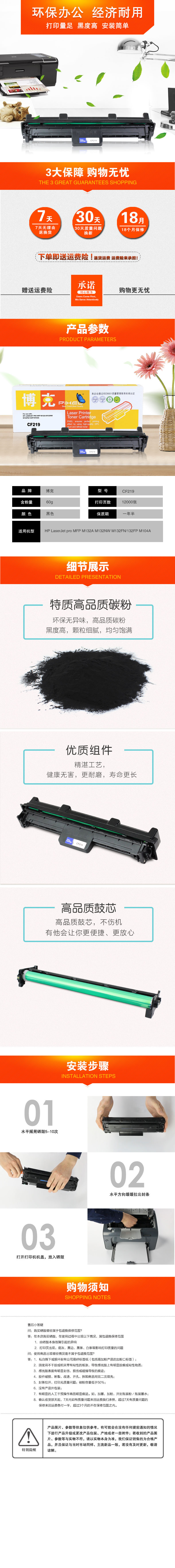 博克(PIXEL)CF219打印机硒鼓适用HP LaserJet pro MFP M132等 黑色 自营