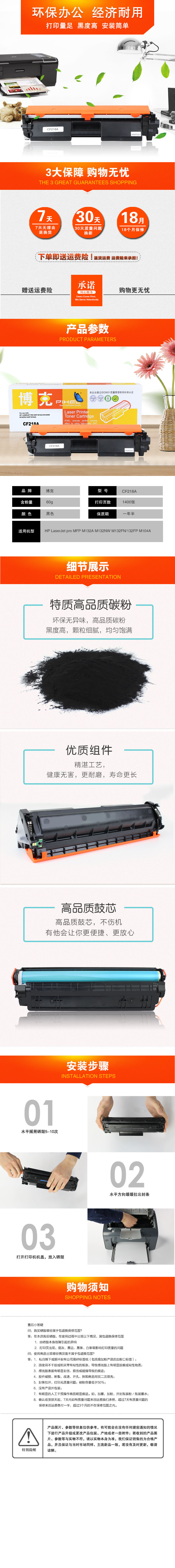 博克(PIXEL)CF218A打印机硒鼓适用HP LaserJet pro MFP M132等 黑色 黑色 自营