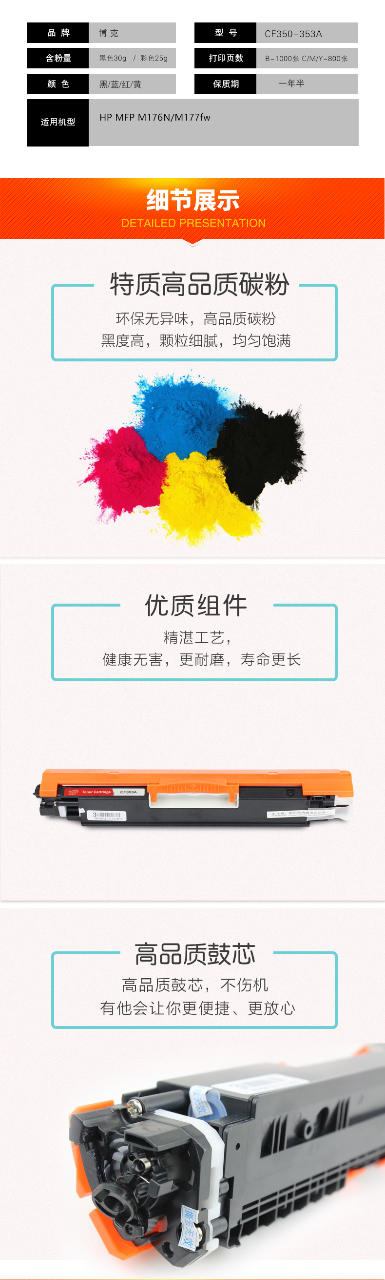 博克(PIXEL)彩色硒鼓CF350-353A适用HP MFP M176N/M177fw 蓝色 自营