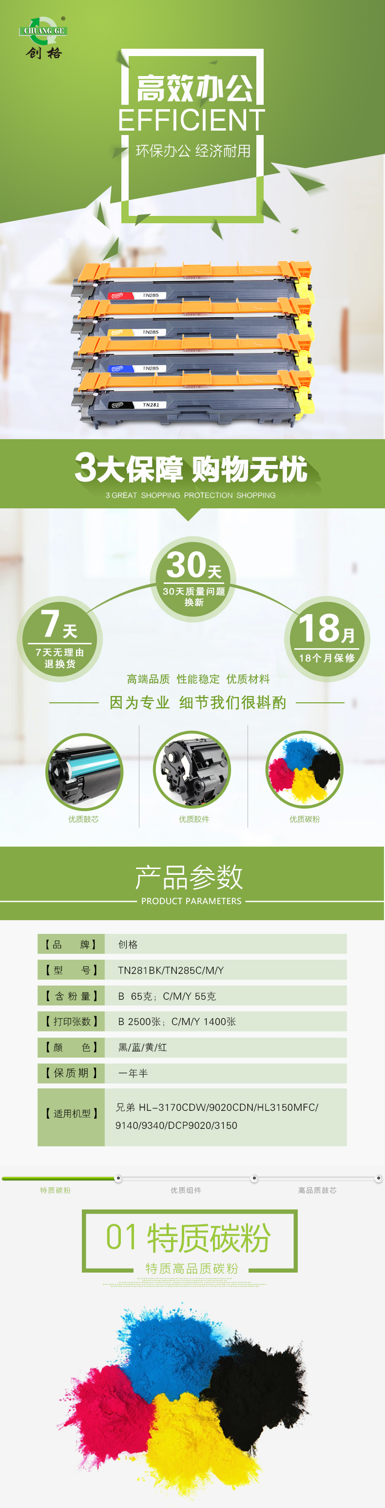 创格(CHUANG GE)TN281墨粉盒/TN285粉仓适用兄弟3170 9020cdn 彩色 蓝色 自营