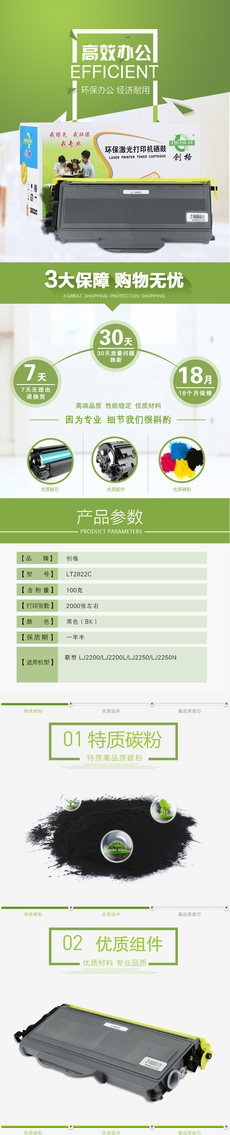 创格(CHUANG GE)LT2822打印机粉仓黑色适用联想 LJ2200/LJ2200L/LJ2250等 黑色 自营