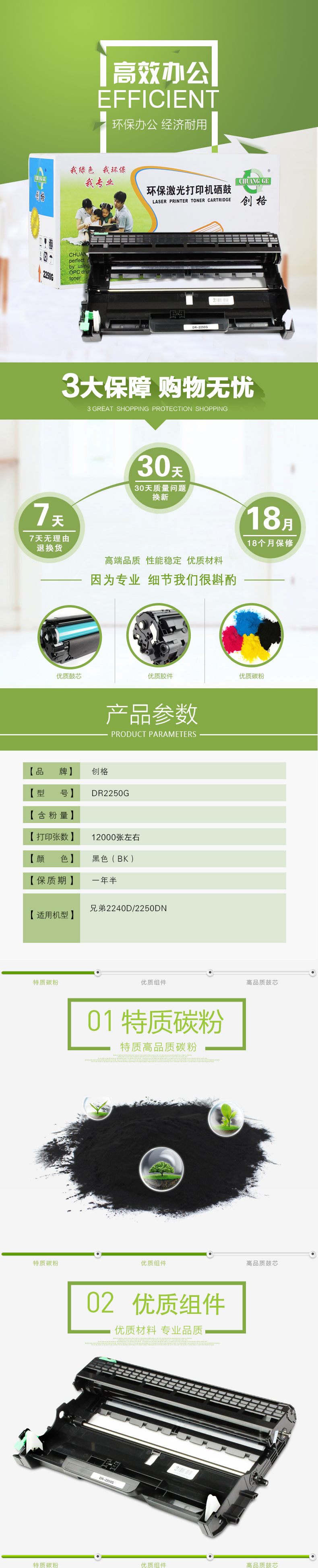 创格(CHUANG GE)打印机硒鼓DR-2250适用机型 兄弟2240D/2250DN 黑色 自营