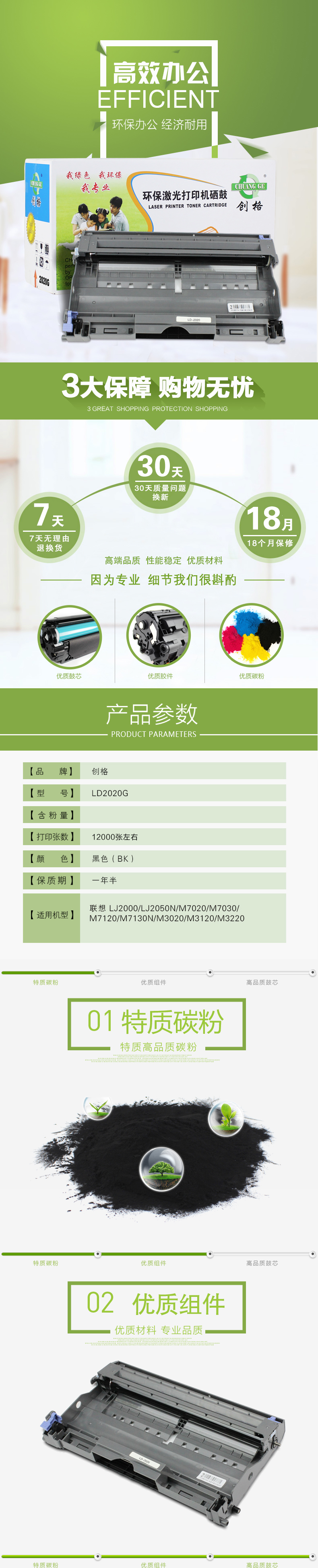 创格(CHUANG GE)LD-2020打印机硒鼓黑色适用联想 LJ2000/LJ2050N/M7020等 黑色 自营