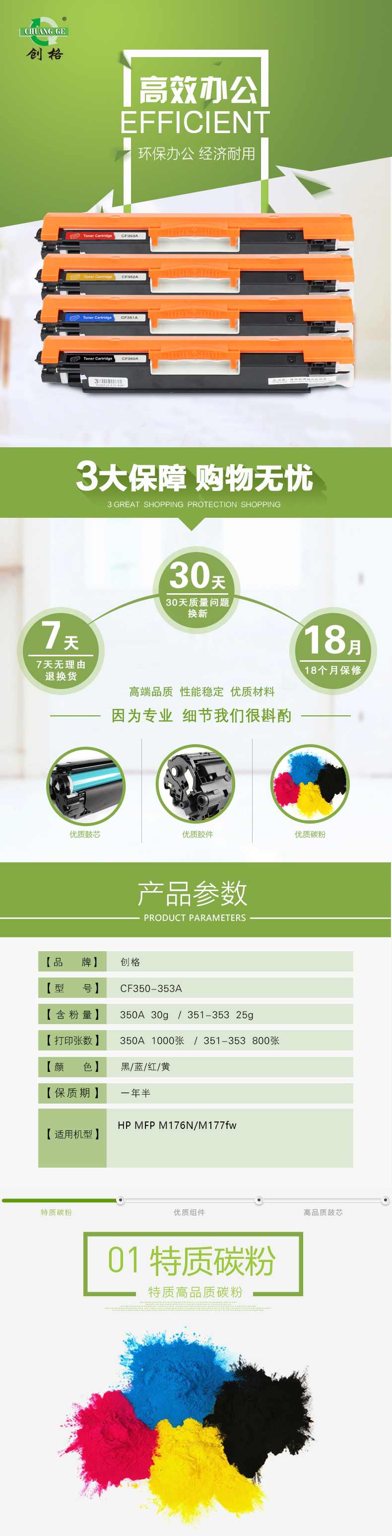 创格(CHUANG GE)彩色硒鼓CF350-353A适用HP MFP M176N/M177fw 黑色 自营