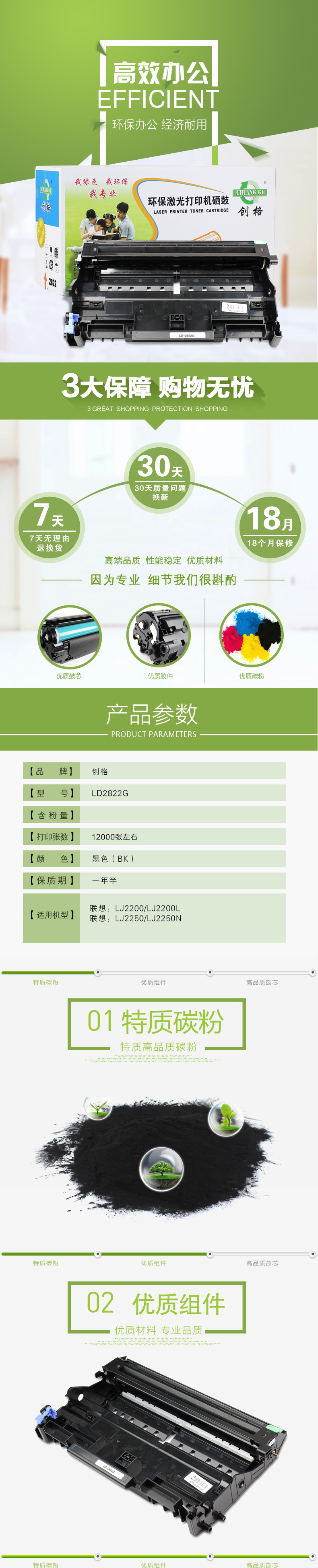 创格(CHUANG GE)LD2822打印机硒鼓单只装适用联想 LJ2200/LJ2200L/LJ2250等 黑色 自营