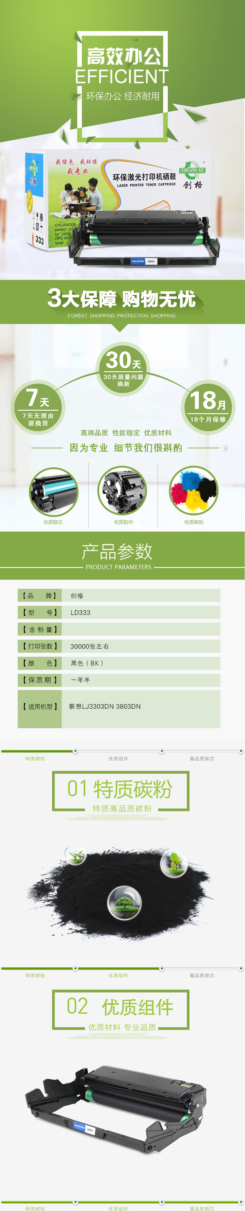 创格(CHUANG GE)LD333打印机硒鼓适用联想LJ3303DN 3803DN等 黑色 自营