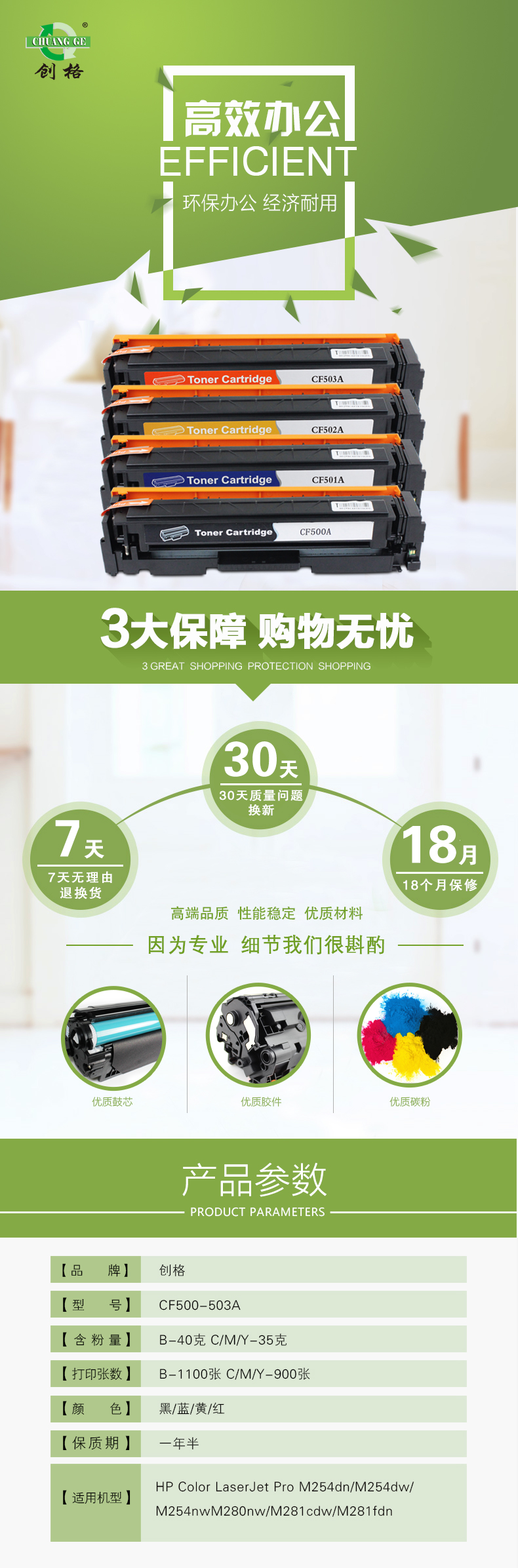 创格(CHUANG GE)打印机耗材彩色硒鼓CF500-503A适用HPM254d/M280nw/M281等 黄色 自营