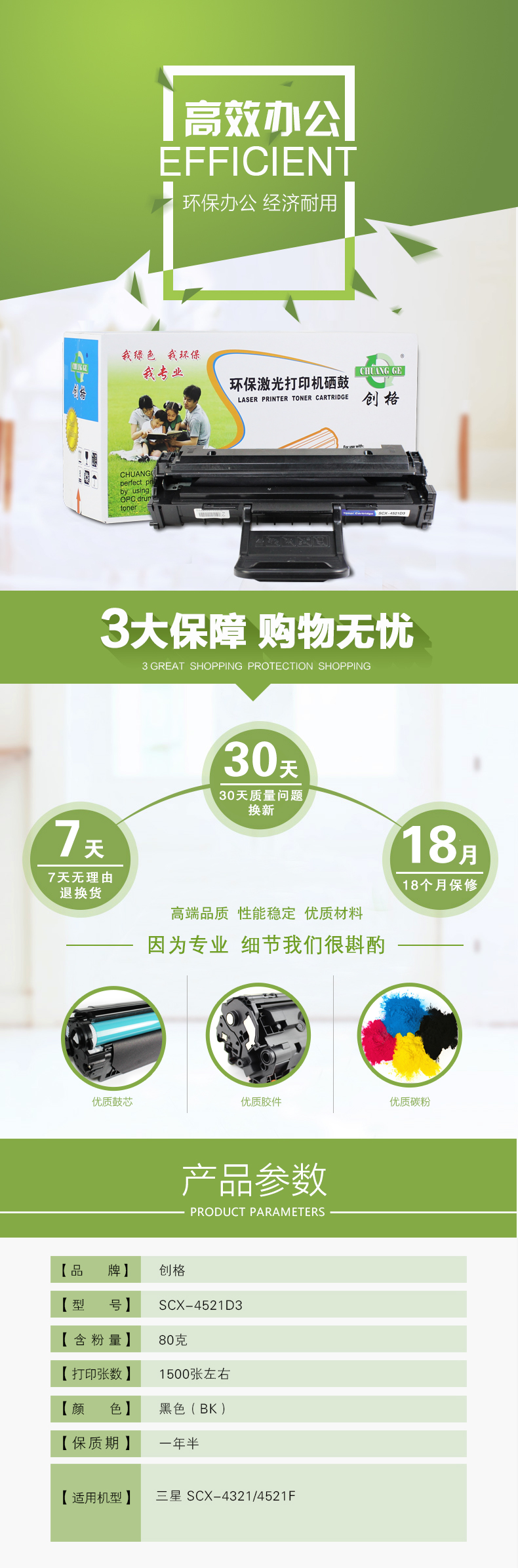 创格(CHUANG GE)SCX-4521D3打印机硒鼓适用三星1610D2适用于三星SCX-4321/2010等 黑色 自营