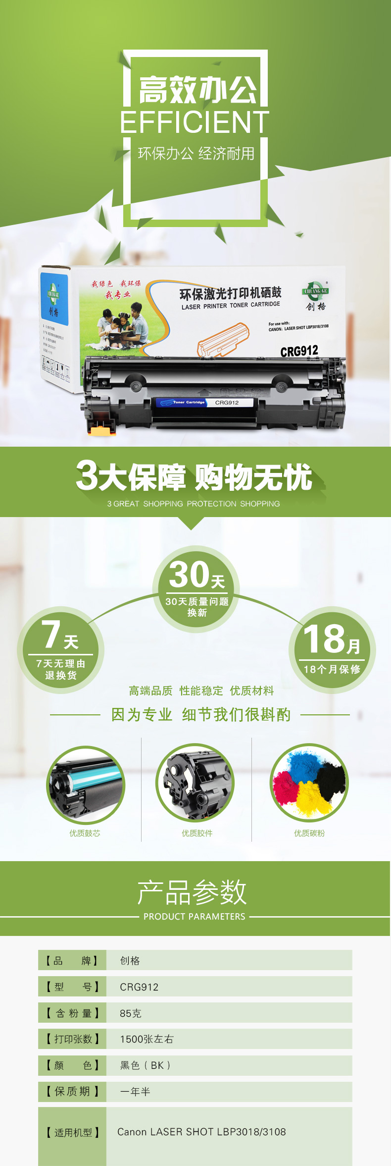 创格(CHUANG GE)硒鼓 CRG912适用于Canon LASER SHOT LBP3018/3108打印耗材 黑色 自营