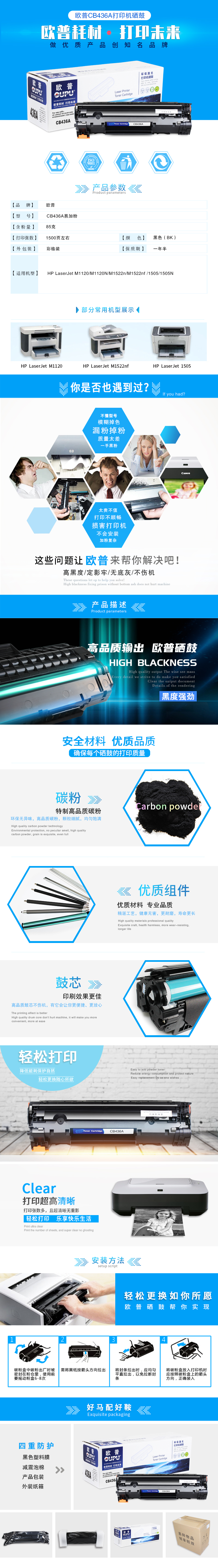 欧普(oupu)436A易加粉硒鼓适用HP LaserJet M1120/M1120N/M1522n/M1522nf /1505/1505N 自营
