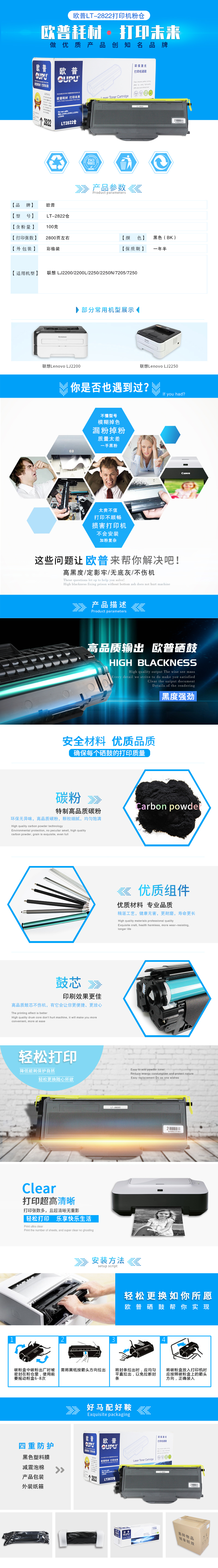 欧普(oupu)LT2822粉仓通用LT2922适用于联想 LJ2200/2200L/2250/2250N/7205/7250 自营