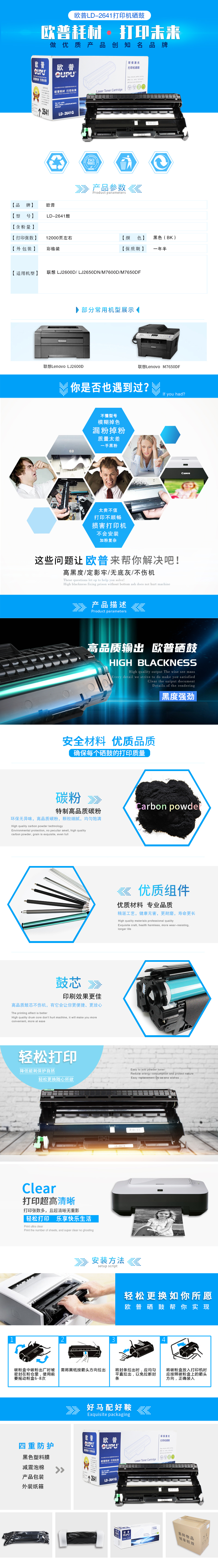 欧普(oupu)LD2641硒鼓通用LD2441适用于联想 LJ2600D/2650DN/M7600D/7650DF/7400/7450 自营