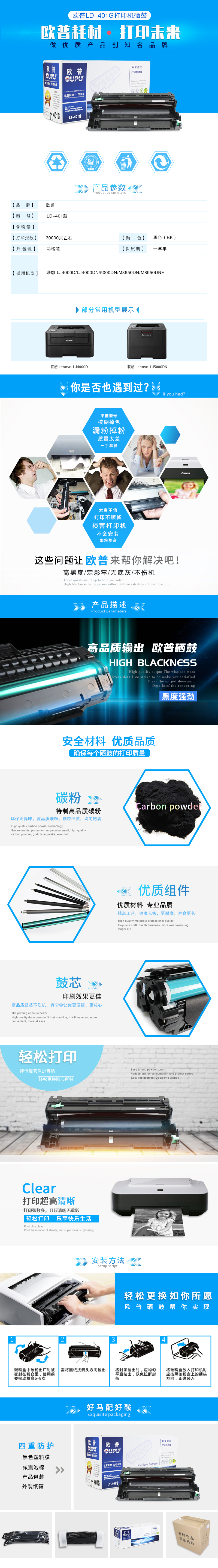 欧普(oupu)LD401硒鼓适用联想LJ4000D/LJ4000DN/5000DN/M8650DN/M8950DNF 自营