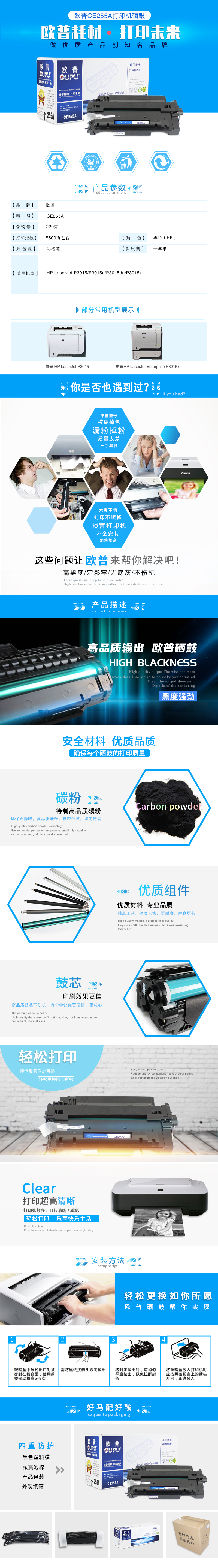 欧普(oupu)CE255A打印机硒鼓适用HP LaserJet P3015/P3015d等 黑色 自营