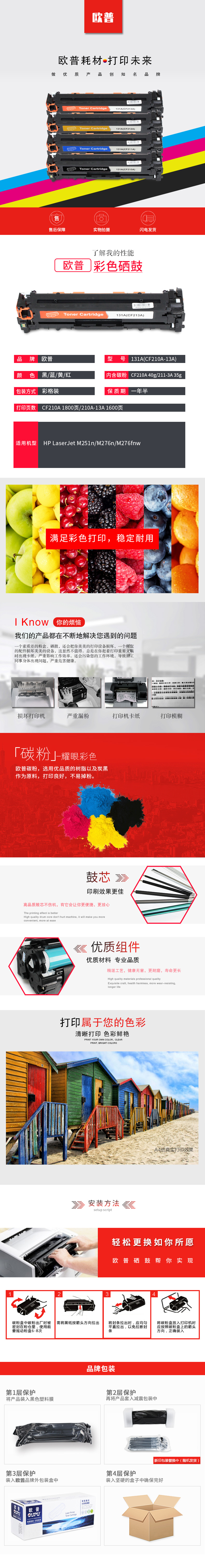 欧普(oupu)131A硒鼓 CF210A黑色适用HP LaserJet M251n/M276n/M276fnw 自营