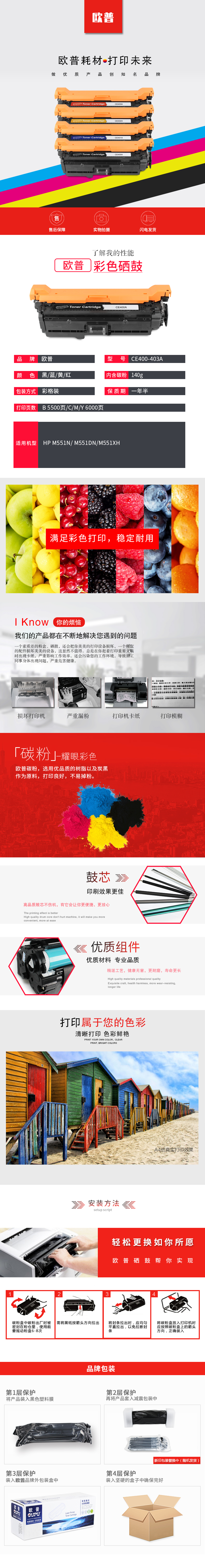 欧普(oupu)CE403A红色硒鼓适用HP M551N/M551DN/M551XH 自营