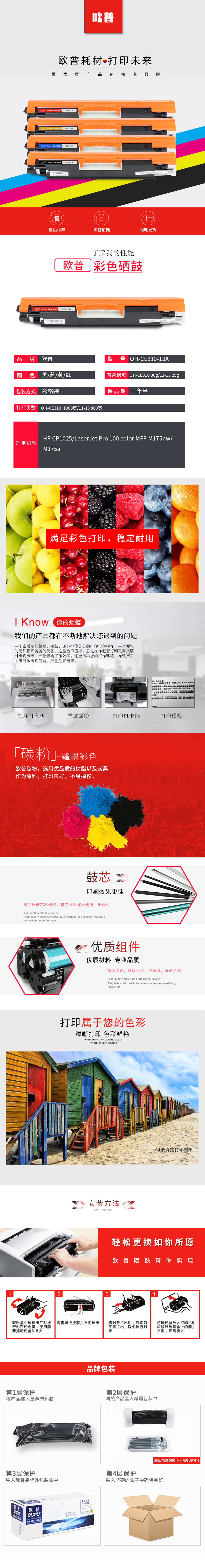 欧普(oupu)彩色硒鼓CE310-313A套装适用HP CP1025/M175nw/M175a等 自营