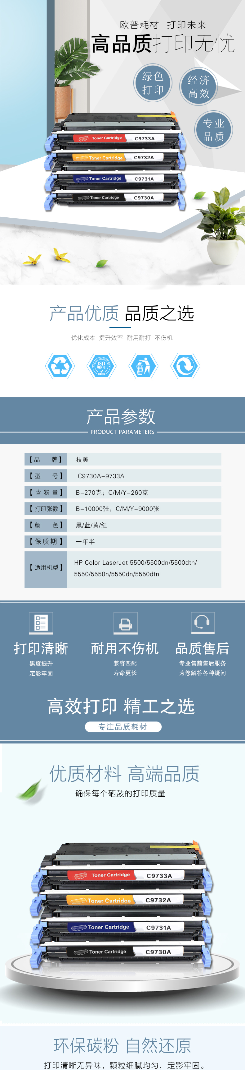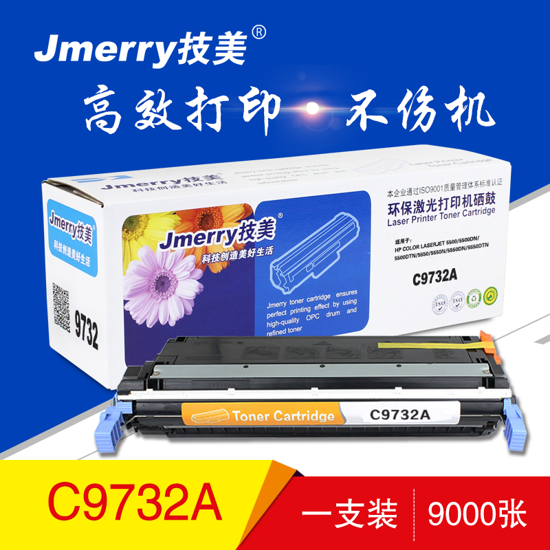 技美(Jmerry)彩色硒鼓HPC9732A适用HPColorLaserJet 5500/5500dn等 黄色 自营
