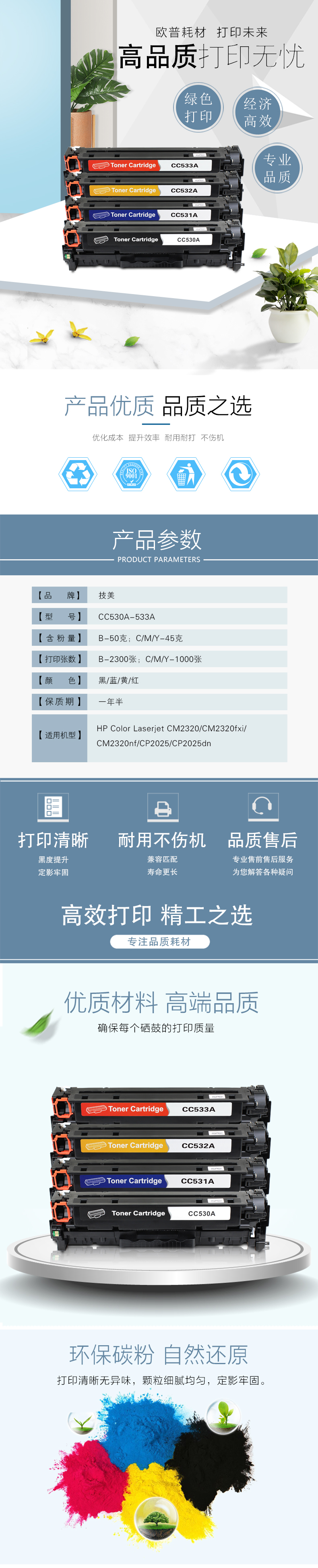 技美(Jmerry)彩色硒鼓CC530A-533A适用HP Color Laserjet CM2320等 彩色套装 自营